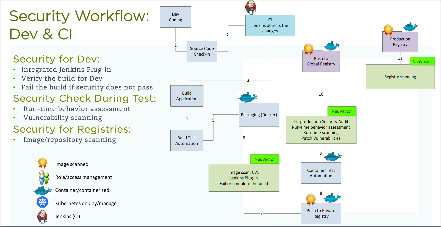NeuVector 通过以下方式确保 Dev 和 CI 安全。