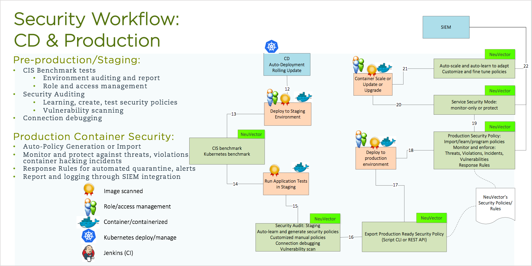 NeuVector 通过以下方式确保 CD(持续部署)和生产安全。